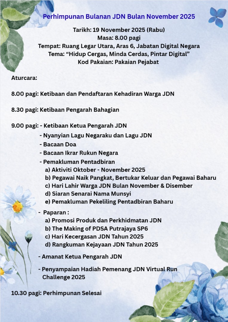 Perhimpunan Bulanan Jabatan Digital Negara bagi bulan November 2025 - Anjuran Bahagian Pembangunan Perkhidmatan Gunasama Infrastruktur dan Keselamatan Digital (BPG)